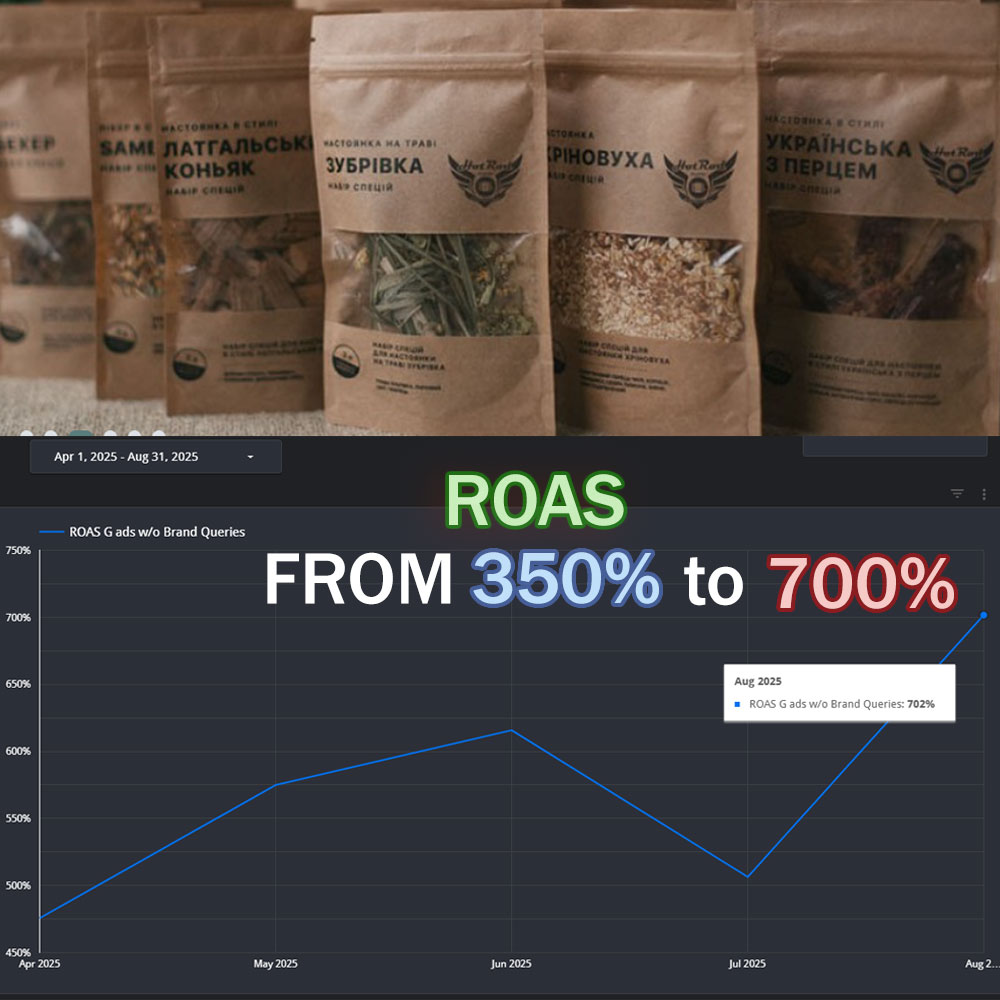 This client works in the home appliances, and mobile phones industry. Represents the Roman brand of rugged phones, air fresheners, charging power stations. My main task was to increase existing ROAS by optimizing campaigns.