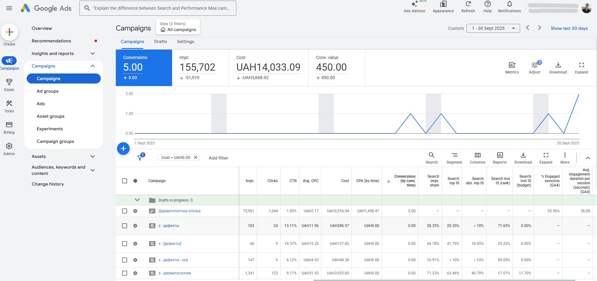 At the moment the client approached me as a Google Ads specialist, the advertising system was in a critical state.