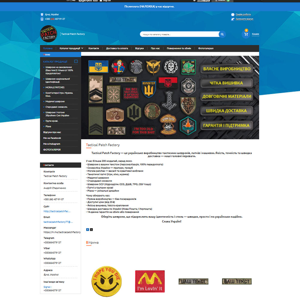 A Ukrainian patch manufacturer specialized in embroidered name tags, military insignia (NGU, AFU), humorous patches, and themed designs (e.g., Fallout, Chernobyl). The company also offered custom-made orders.