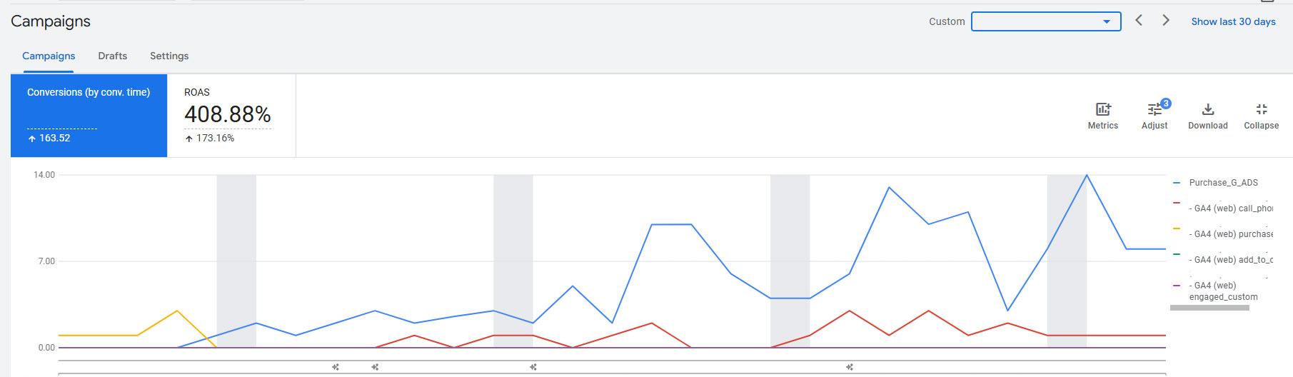 • After optimizations, the client reached a ROAS of 408%, meeting the KPI.